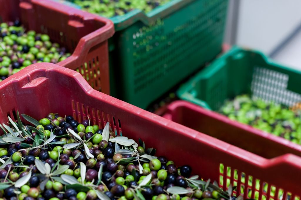 Ernteverfahren: kombiniert; handgepflückt und mit pneumatischen, handgehaltenen Olivenrüttlern